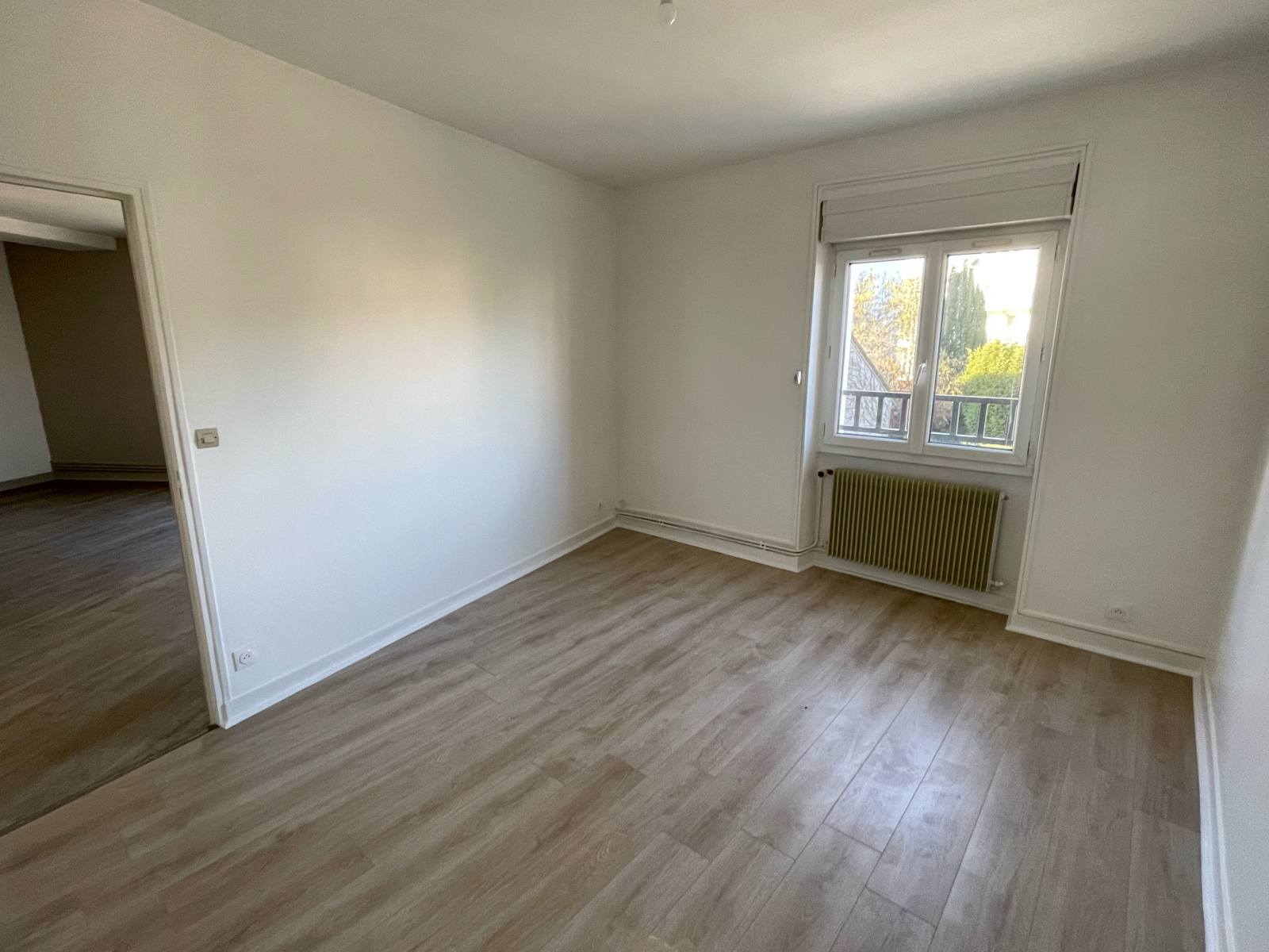 Huisserie PVC double vitrage, volet roulant électrique.
