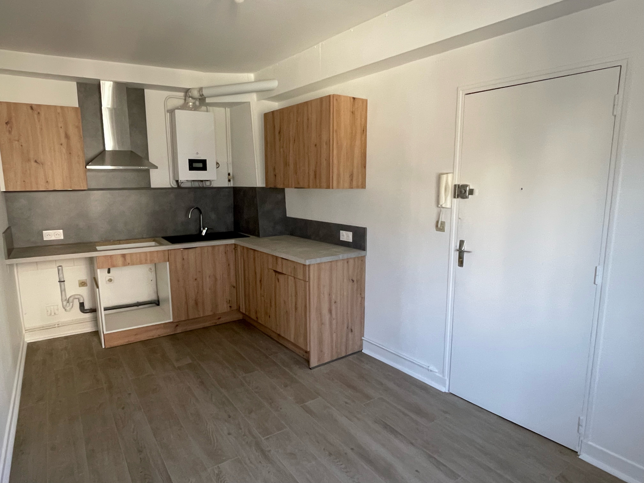 Cuisine aménagée, séjour de 32 m², chambre, salle d'eau / wc.